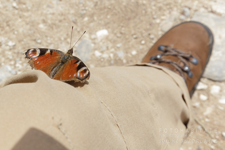 Zur Mimikry gehört auch das Täuschen mit falschen Augenpaaren. Jeder kennt sie vom wunderschönen Tagpfauenauge (Inachis io). Beutegreifer werden kurzzeitig abgeschreckt oder irritiert. Dem anvisierten Opfer gelingt dadurch schneller die Flucht. Ich flüchtete dagegen nicht, sondern freute mich über so viel Zutraulichkeit! 🙂