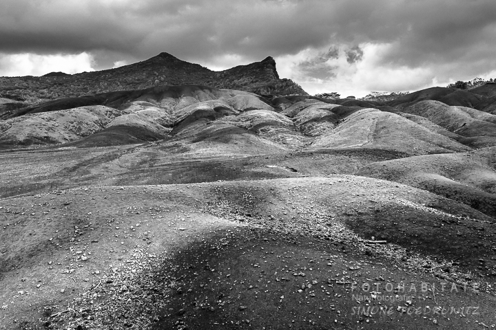 Wer Pech hat und der Himmel ist beim Besuch des privaten Geoparks bedeckt, wird die bunten Farben leider nur erahnen können. Dann bieten aber die welligen Muster der Dünen ein interessanten Kontrast, insbesondere in schwarzweiss. Entstanden sind die Formen übrigens als Folge von Wassererosion durch Regen.