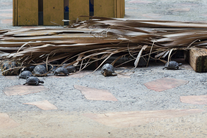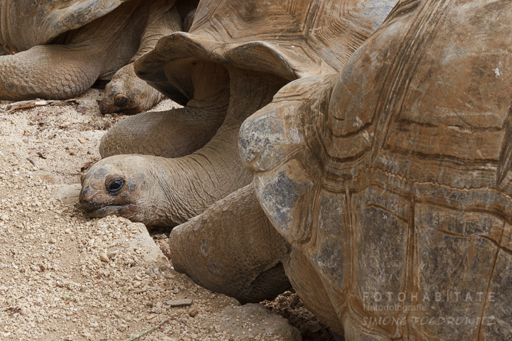Die Aldabra-Riesenschildkröte gehört bei einer Länge von 1,2 Meter zusammen mit der Galapagosschildkröte zu den größten Landschildkröten der Welt. Beim Besuch im Vanille Natur Park wird auch ziemlich schnell klar, warum Schildkröten so alt werden. Nicht nur, weil sie die Langsamkeit in Reinform sind, sondern weil sie gerne und oft ein Nickerchen machen. 🙂