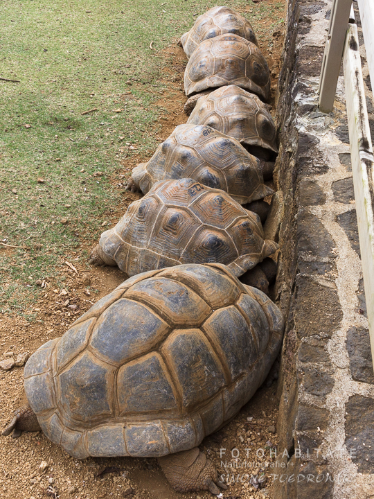 Der Vanille Nature Park ist übrigens die weltweit größte Zuchtstation von Aldabra-Riesenschildkröten. Hier laufen rund 150 ausgewachsene Tiere und von ihnen separiert etwa 700 Sprösslinge unterschiedlichen Alters herum. Und das hat einen guten Grund.