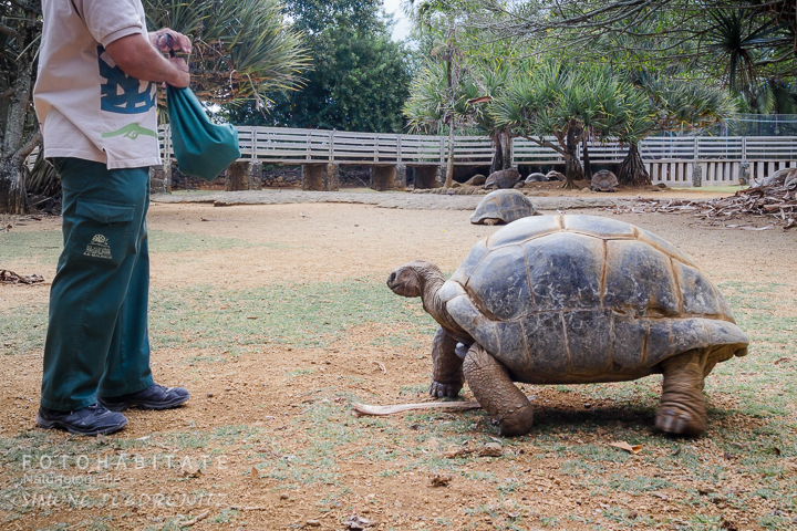 Vanille Nature Park is also the world’s largest cultivation station for Aldabra giant tortoises. Around 150 adult animals run around here and about 700 young animals of different ages which are separated from them. And there is a good reason for this.