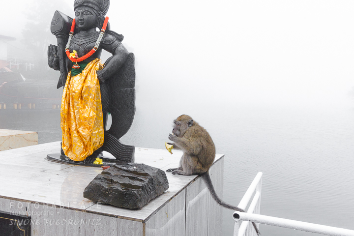 Wer auf Mauritius Affen treffen möchte, besucht Grand Bassin, eine der bedeutendsten Hindu-Pilgerstätten außerhalb Indiens. Rund um den heiligen See gibt es kleine Tempel, zahlreiche Opferschreine und bunte Götterstatuen, darunter auch der Affengott Hanuman. Hanuman gilt bei den Hindus als Sohn des Windes und Inkarnation von Shiva.