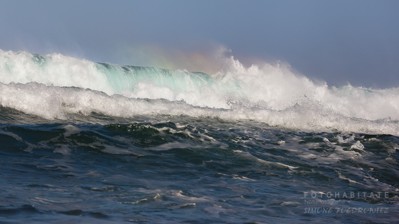 Gleiches Prinzip gilt auch für die Regenbogenfarben auf den heranbrausenden Wellen. Sonst würde man die wahrscheinlich wesentlich häufiger beobachten können. Ehrlich gesagt, musste ich für diesen Beitrag erst einmal meine physikalischen Grundkenntnisse wieder auf einen aussagekräftigen Stand bringen. 🙂 „Lichtbrechung“ als Antwort auf die Frage wie ein Regenbogen entsteht, war mir dann doch zu wenig 😉