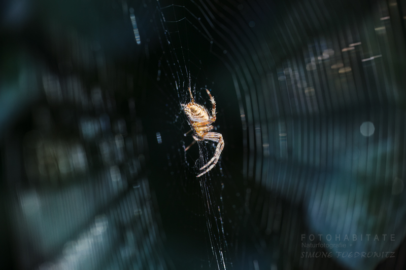 da stellen sich bei mir sofort alle anderen Körperhärchen auf. 🙂 Dennoch finde ich Spinnen und ihre Webkunst faszinierend. Mal abgesehen davon wie wichtig diese Art für das ökologische Gleichgewicht ist. Übrigens frisst die Gartenkreuzspinne ihr altes Netz nahezu auf, bevor sie ein neues webt. Warum auch kostbares Protein verschwenden? Spinnenseide ist unglaublich dehnbar, enorm belastbar und dazu noch biologisch abbaubar. Das schlägt im Verhältnis zum Gewicht Stahl um das Vierfache!