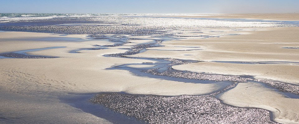 Lust auf eine stürmische Strandwanderung? Kaum trat ich am Fossil Point aus dem Schutz der Dünen, wehte der Wind mir einen Schwall Sand in mein Gesicht. Ich nahm es kaum wahr, denn viel zu sehr war ich von der vor mir liegenden Szenerie gebannt. Wind und Meer hatten eine wunderschöne Komposition aus Formen und Farben in den noch feuchten Sand gezeichnet!…